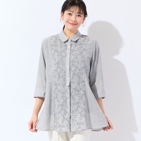 ◆さり気ない刺繍が可愛い!さらっとドライに織れるワッシャー素材のシャツ◆
