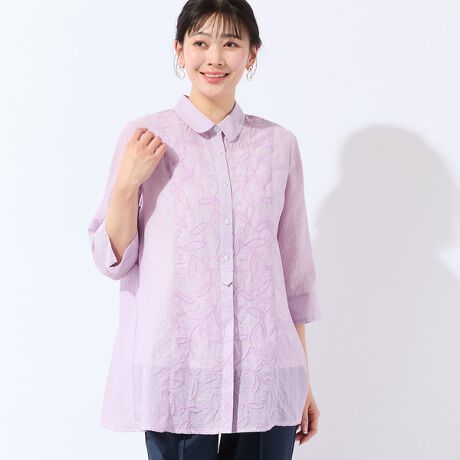 ◆さり気ない刺繍が可愛い!さらっとドライに織れるワッシャー素材のシャツ◆