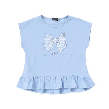 大きなリボンのプリントがフェミニンなデザインの半袖Tシャツ。