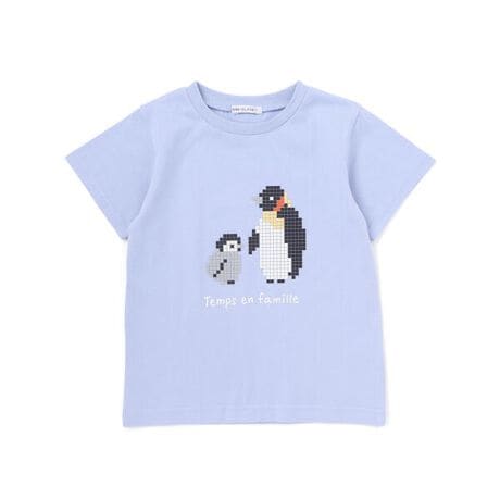 立体感のあるブロック状のシリコンプリントでペンギンの親子が描かれています。