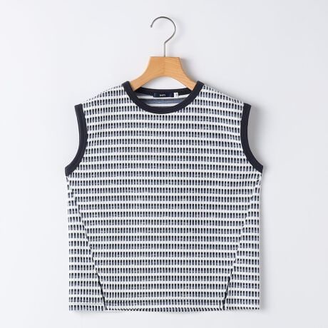 表情豊かなジャカード素材がアクセントになるノースリーブカットソー