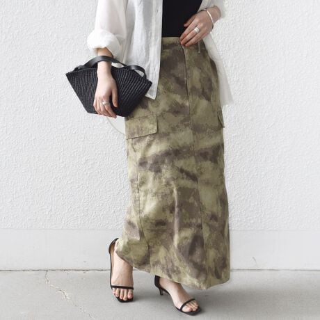 実用性とトレンド感を兼ね備えた大人のカモ柄カーゴスカート