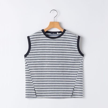 表情豊かなジャカード素材がアクセントになるノースリーブカットソー