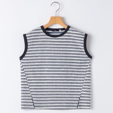表情豊かなジャカード素材がアクセントになるノースリーブカットソー