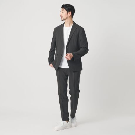 オンオフ対応でも使えて、単品でも着まわせるユーティリティ性が魅力的なカジュアルセットアップスーツ。