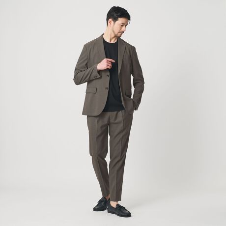 オンオフ対応でも使えて、単品でも着まわせるユーティリティ性が魅力的なカジュアルセットアップスーツ。