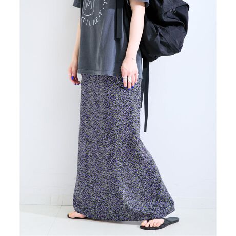 落ち感のあるサラッとした素材感で、すっきりとしたIラインシルエットに仕上げています。バックにはスリット入っているので足さばきがよく、抜け感のある着こなしになっています。ウエストはゴム仕様なので、リラックスした穿き心地です。