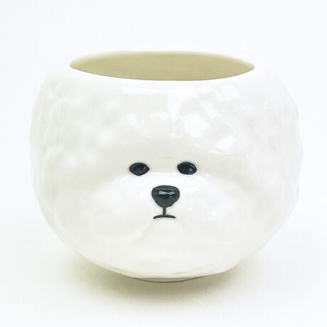 ビションフリーゼがそのままお茶碗になっちゃいました!ビションフリーゼはボリュームのある真っ白なカールのかかっている被毛と黒い目鼻が愛らしい犬種です☆あの可愛いらしいお顔もリアルに再現!ご飯食べるときにぴったり♪そっとあなたに寄り添ってくれます♪【容量:310ml】