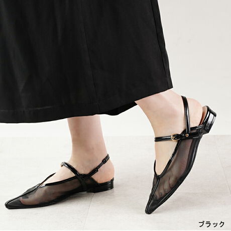 透け感のあるチュール素材と、足元を美しく見せるすっきりとしたシルエットを組み合わせた、大人のためのスリングバックパンプス。