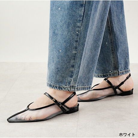 透け感のあるチュール素材と、足元を美しく見せるすっきりとしたシルエットを組み合わせた、大人のためのスリングバックパンプス。