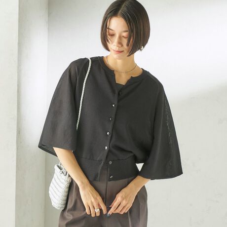 コンパクトな着丈に、広がりのある袖シルエットで一枚でもさりげなく着映えするデザインです。