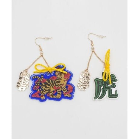 [型番:76PZ6203-2026]【倭物やカヤ×中村杏子】可愛らしい表情の動物たちをポップな色使いで表現したピアス。アクリル素材で身に着けやすい仕様に。耳元で揺れるたびに存在感を放ち、装いのアクセントにぴったりのアイテムです。