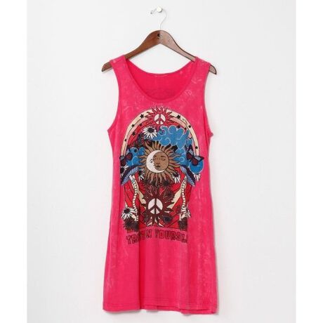 [型番:TXX-6116-2026]【タイ直輸入】月と太陽、蝶など自然との共生をテーマにしたモチーフが印象的なタンクトップ。ヴィンテージ感のある加工が味わいを深め、ゆったりしたシルエットで一枚着もレイヤードも楽しめる万能アイテム。