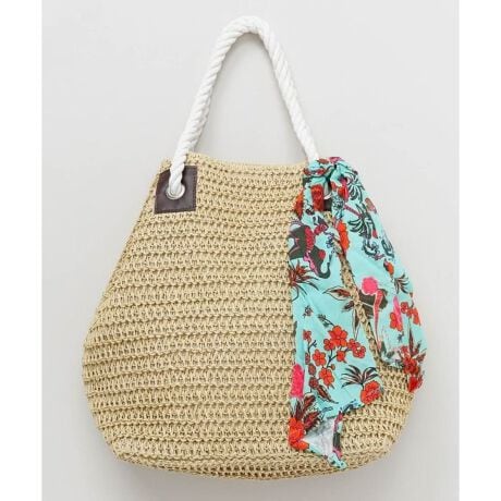 [型番:CKLP6102-2026]ペーパー素材の涼しげなトートバッグ。タイの水かけ祭り「ソンクラーン」を楽しむカラベラやマリーゴールドなど縁起の良い柄が鮮やかなスカーフ付き。ペットボトルやポーチ、折りたたみ傘など荷物がたっぷり入る大きめなサイズ感で、お出かけにもぴったりなバッグです。