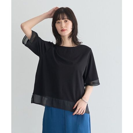 袖口と裾にほどよい透け感のある素材を取り入れ、シンプルなデザインの中にも涼し気なニュアンスをプラスします。