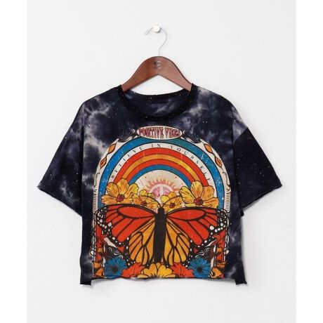 [型番:TXX-6115-2026]【タイ直輸入】ヒッピーカルチャーを彷彿とさせるプリントTシャツ。短丈のカットオフデザインがポイント。月や蝶、太陽などの自然モチーフをサイケデリックに表現し、一枚で主役になる個性派アイテム。