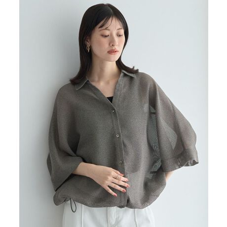 裾ドロストメッシュシャツ