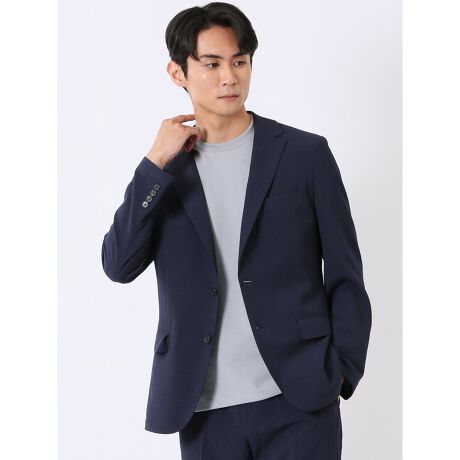 リネン調 スリムフィット 2ボタン ジャケット 紺(セットアップ可能)