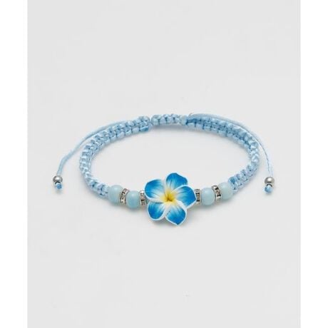 [型番:46CZ6201-2026]ハワイで神が宿る花とされるプルメリアをモチーフにしたブレスレット。カラフルな紐と花の組み合わせが、お土産のような温もりあるデザインです。華奢な印象で重ね付けにもおすすめ。手元にさりげなくハワイの彩りを添えてくれるアイテムです。