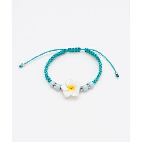 [型番:46CZ6201-2026]ハワイで神が宿る花とされるプルメリアをモチーフにしたブレスレット。カラフルな紐と花の組み合わせが、お土産のような温もりあるデザインです。華奢な印象で重ね付けにもおすすめ。手元にさりげなくハワイの彩りを添えてくれるアイテムです。