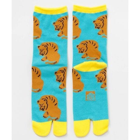 [型番:7JKP6203-2026]浮世絵をポップに再解釈した揺る浮世絵シリーズの足袋靴下。写楽の「三代目大谷鬼次の江戸兵衛」歌川国利「志んぱんねこ尽」伊藤若冲の「虎図」をオマージュ。日本の名画を身近に楽しめます。