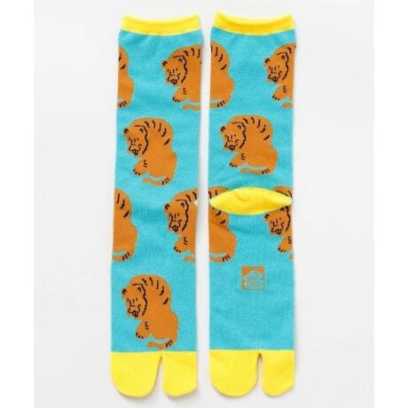 [型番:7JKP6204-2026]浮世絵をポップに再解釈した揺る浮世絵シリーズの足袋靴下。写楽の「三代目大谷鬼次の江戸兵衛」歌川国利「志んぱんねこ尽」伊藤若冲の「虎図」をオマージュ。日本の名画を身近に楽しめます。