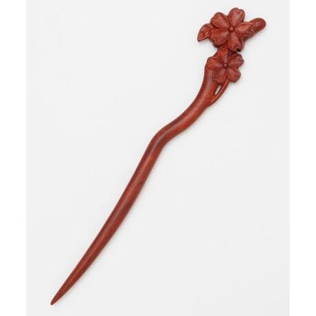 [型番:7CYZ6201-2026]木そのものの風合いを活かした木彫りのかんざし。日本を象徴する花々がモチーフ。なめらかでしっかりとした軸が髪を安定してまとめ、一本挿すだけで上品な仕上がりに。