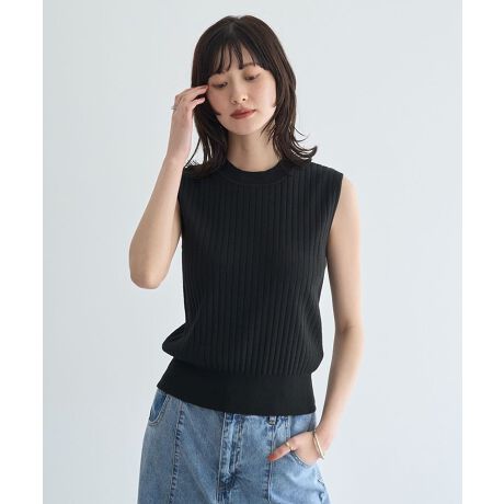 すっきりとしたシルエットとリブ編みの縦ラインが、自然にスタイルアップを叶えてくれるノースリーブニット。