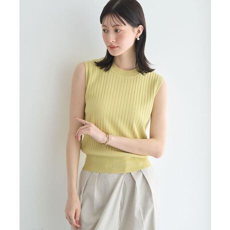すっきりとしたシルエットとリブ編みの縦ラインが、自然にスタイルアップを叶えてくれるノースリーブニット。