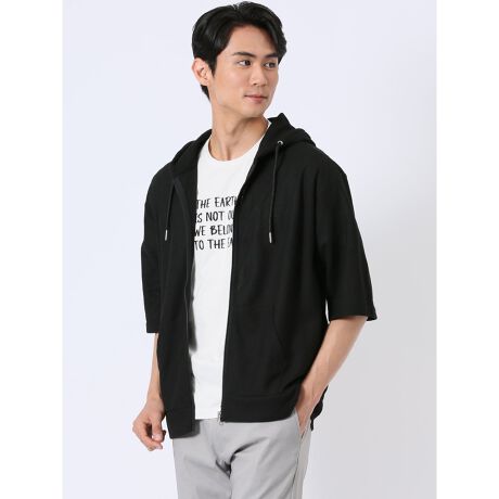 サラッと羽織れる半端袖のパーカーです。着脱がスムーズなフルジップ仕様、ロングシーズン着回せる半端袖、手の入れやすいカンガルーポケットがポイント。タウンユースはもちろん、アクティブに動くアウトドアやスポーツシーン、ご自宅でのリラックスタイムにも大活躍してくれます。