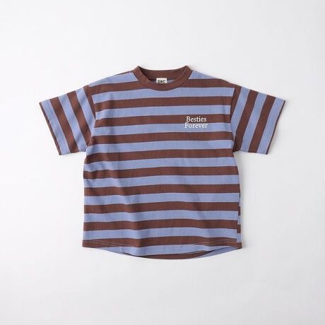 少し太めの先染めボーダーが目を引く半袖Tシャツは胸元のワンポイントロゴがポイント