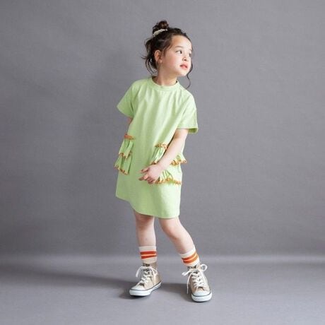 サイドに施された配色メロウフリルがポイントの半袖ワンピース