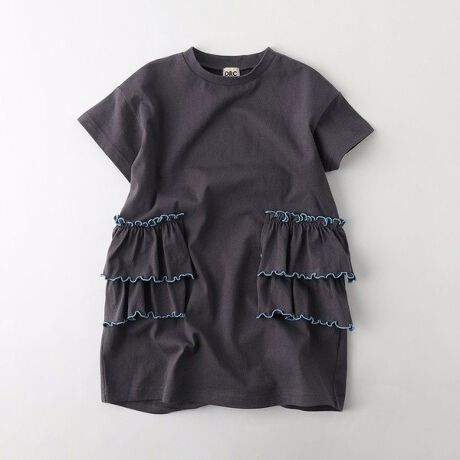 サイドに施された配色メロウフリルがポイントの半袖ワンピース