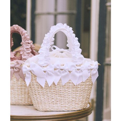 【2WAY仕様】フロントのリボンとフリルハンドルが、大人可愛いかごバッグ。