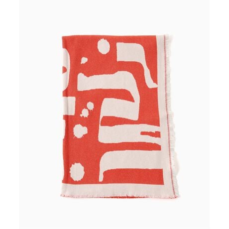 大胆な柄と鮮やかな赤が魅力の、BARKER TEXTILE(バーカーテキスタイル)のスローケット。