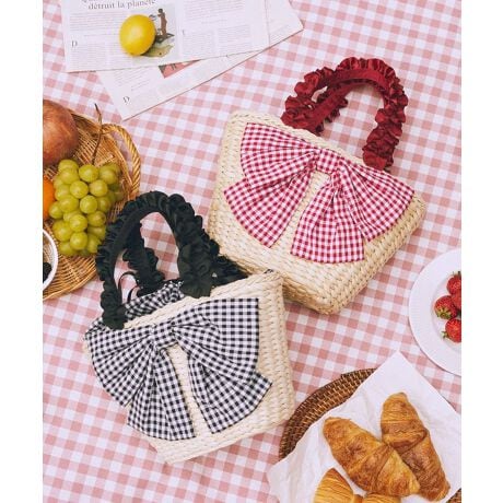 \毎年人気のかごバッグに新デザインが登場!/ギンガムチェックの大きなリボンがポイントのかごバッグ。