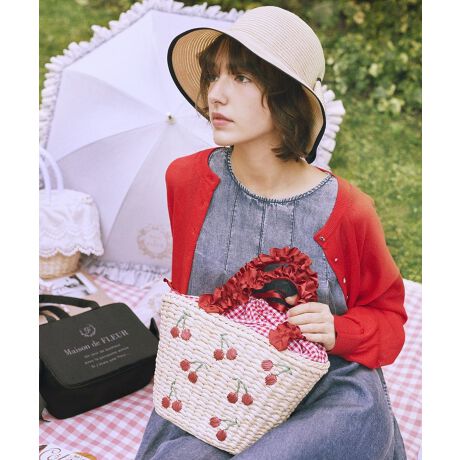 \昨年大人気だったかごバッグが今年も登場!/チェリーの刺繍とギンガムチェックの内装がガーリーなかごバッグ。