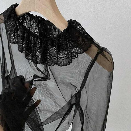レイヤードを楽しむ。レースカラーシアー素材ブラウス レースブラウス インナー 重ね着 大人 きれいめ