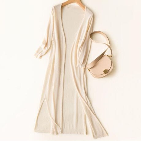 軽やかな透け感で上品に決まるシアー春夏カーディガン 薄手 七分袖 ロング丈 羽織り きれいめ