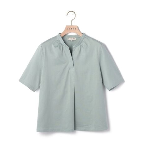 [型番:72263190742]きちんと感のあるスタイリングがかなう、衿付きのプルオーバーカットソーです。コットンにシルケット加工をほどこした素材で、シルクのような光沢感となめらかさをプラスしました。オフィスカジュアルな着こなしはもちろん、デニムやワイドパンツといったラフなボトムスとの組み合わせもおすすめです。※商品画像はサンプルを使用しているため、実際の商品と色味などの仕様が異なる場合がございます。予めご了承ください。