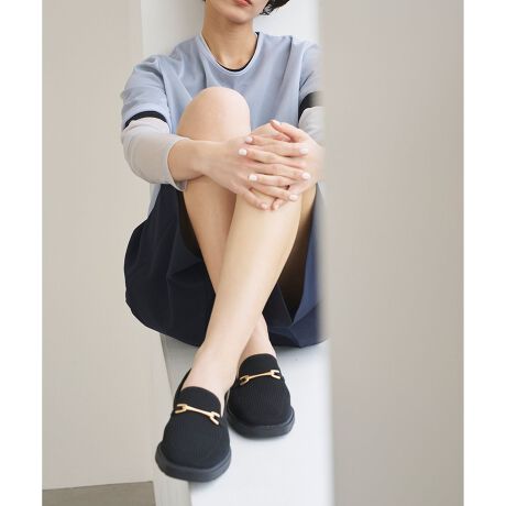 秘密は一枚仕立てのニットアッパーと発泡素材のアウトソール。軽量ポリエステルヤーンでしなやかに編みたてることで裏材や芯材を排除。アウトソールはランニングシューズのような軽さとクッション性に、パンプスのきちんと感もある絶妙なバランスにたどり着きました。
