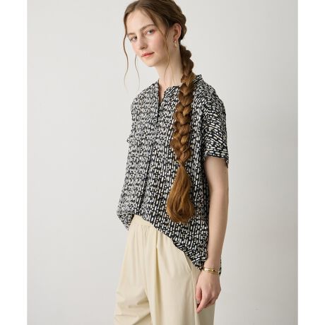 フレンチスリーブプリントブラウス