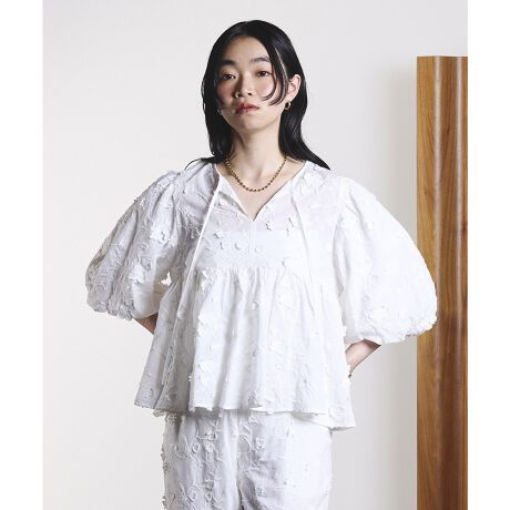 見る角度で表情が変わる3D刺繍が華やぐバルーンブラウス