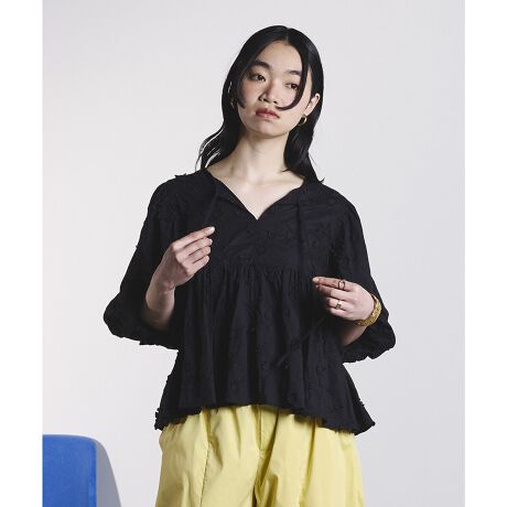 見る角度で表情が変わる3D刺繍が華やぐバルーンブラウス
