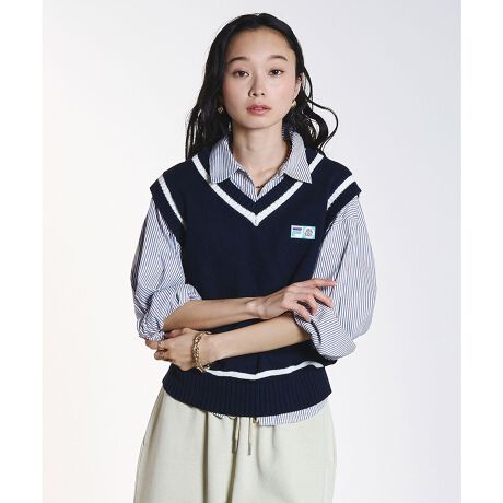 レイヤードするだけでスタイリングに変化が出るニットベストです。