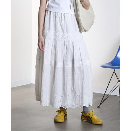 スカラップ裾が軽やかに映える刺繍レースマキシスカート