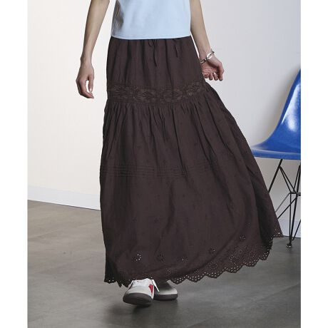 スカラップ裾が軽やかに映える刺繍レースマキシスカート