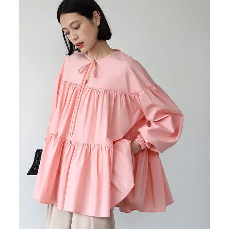切り替え部分に贅沢にギャザーを入れ、トレンドのティアードディテールを取り入れた着映えするブラウス。