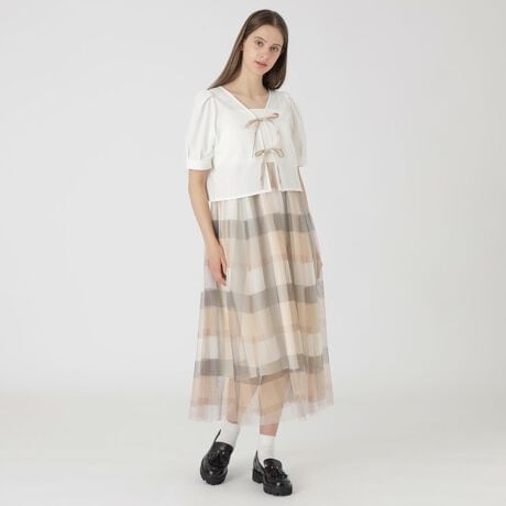 クレストブリッジチェックのチュール素材を重ねたデザインが、軽やかさと透明感を演出します。