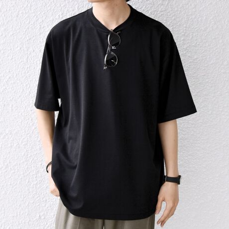 ゆったりとしたシルエットのシンプルなクルーネックTシャツ。